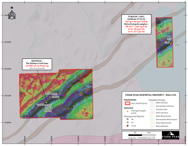 In addition, the Company is pleased to provide an update on its geophysical programs. A high-resolution drone magnetic airborne survey is completed over Starr Peak’s Rousseau and Turgeon properties. Reviewed data are high quality and allow to define with precision the ENE Proterozoic mafic dykes. An airborne VTEMTM survey is currently underway over the Company’s Newmétal project. This survey has been delayed by bad weather and data will be presented to the market once finished, complied and reviewed.