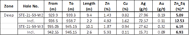 Zn_eq % based on US$: 1.2$/lb Zn, $3.5/lb Cu, $25/oz Ag, $1800/oz Au.